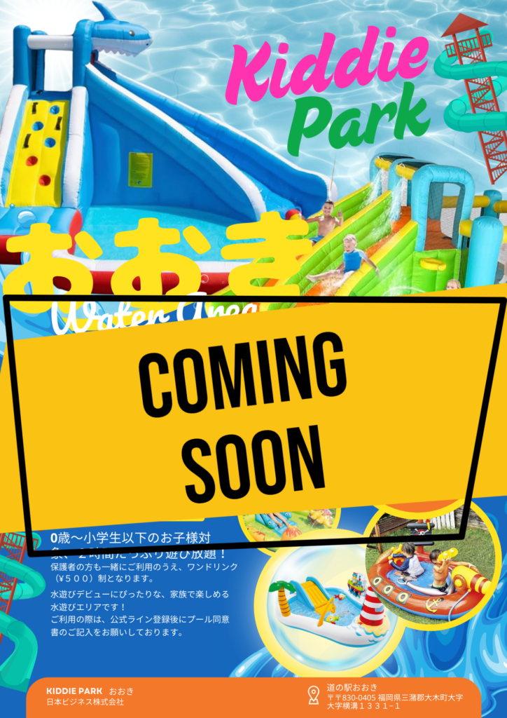 夏だけの水あそびパラダイス!道の駅おおきに、キッズ向けウォーターパーク『Kiddie Park』が今年も登場。巨大スライダーや浅いプールで0歳〜小学生まで水遊びを楽しめます。7月11日(土)〜9月6日(日)までの期間限定夏のプールイベントとなります。