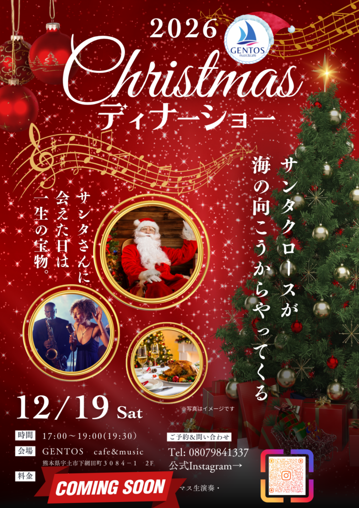 クリスマスソングの生演奏、桟橋の向こうから本当にやってくるサンタクロースの登場や、クリスマス限定の特別メニューなど、大人からお子様まで楽しめる心温まるひととき。