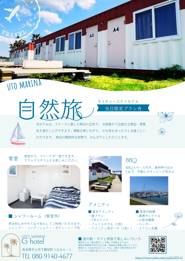 福島県奥会津の自然に囲まれた『金山旅館』と、熊本・宇土マリーナに位置するコンテナ型ホテル『G-HOTEL』を運営し、それぞれの地域の魅力を活かした宿泊体験を提供しています。
